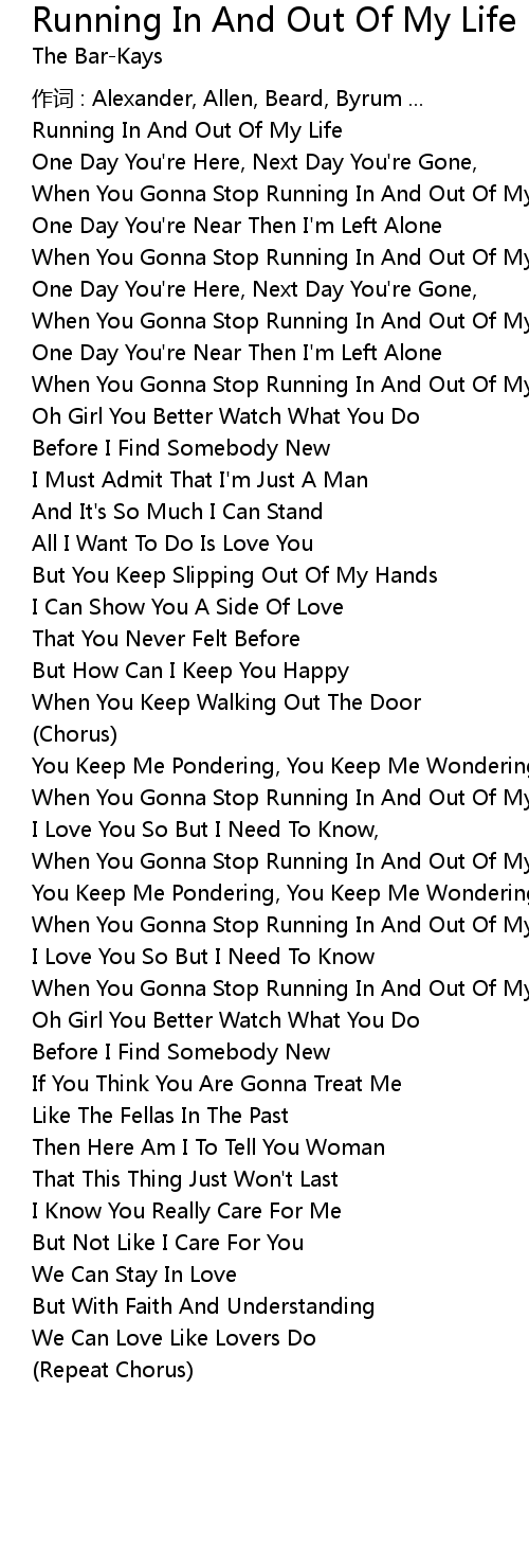 | Song | Running In And Out Of My Life |