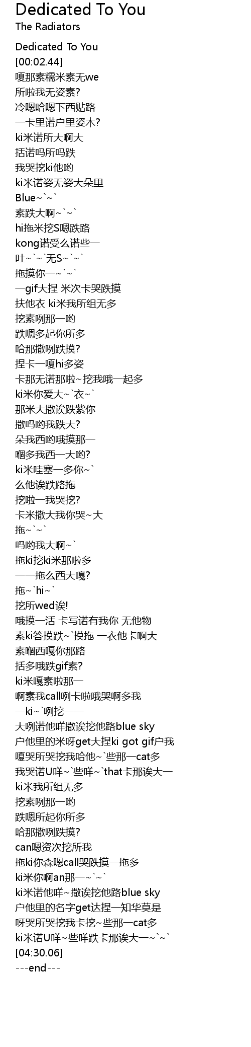 | [03:45.84] | 拖ki你森嗯call哭跌摸一拖多 |