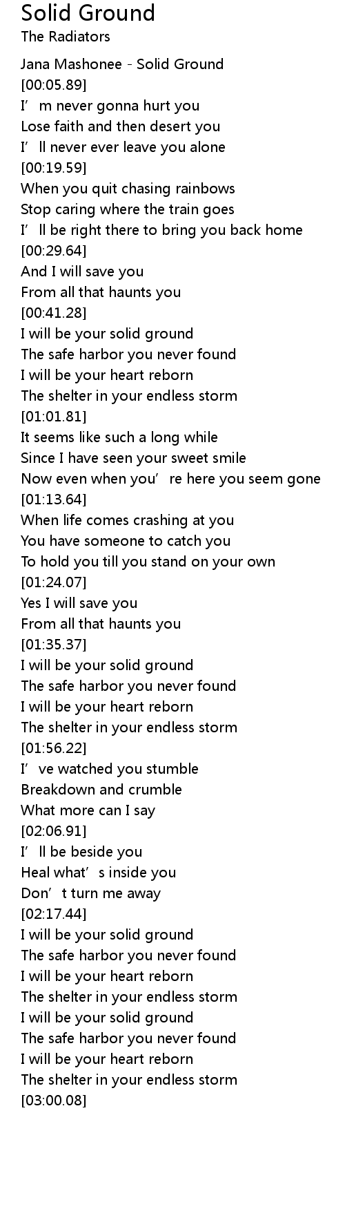 | [00:01.12] | Jana Mashonee Solid Ground |