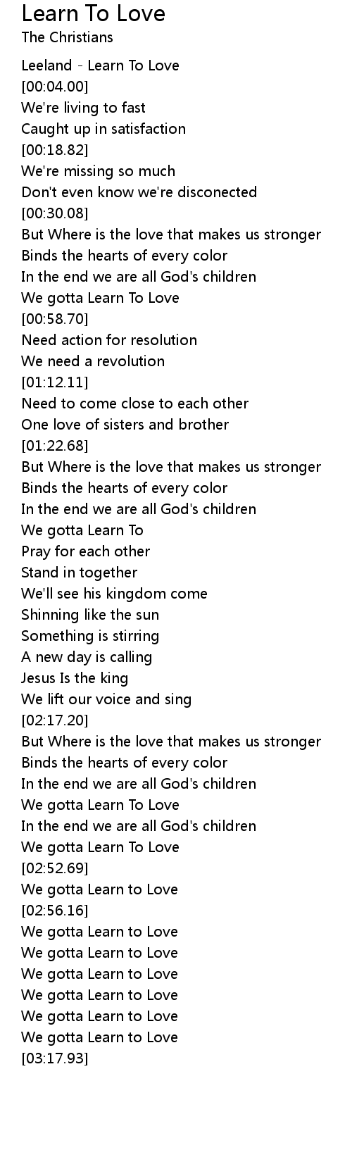 Learn To Love Lyrics