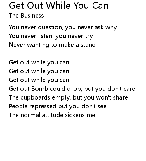 | Song | Get Out While You Can |
