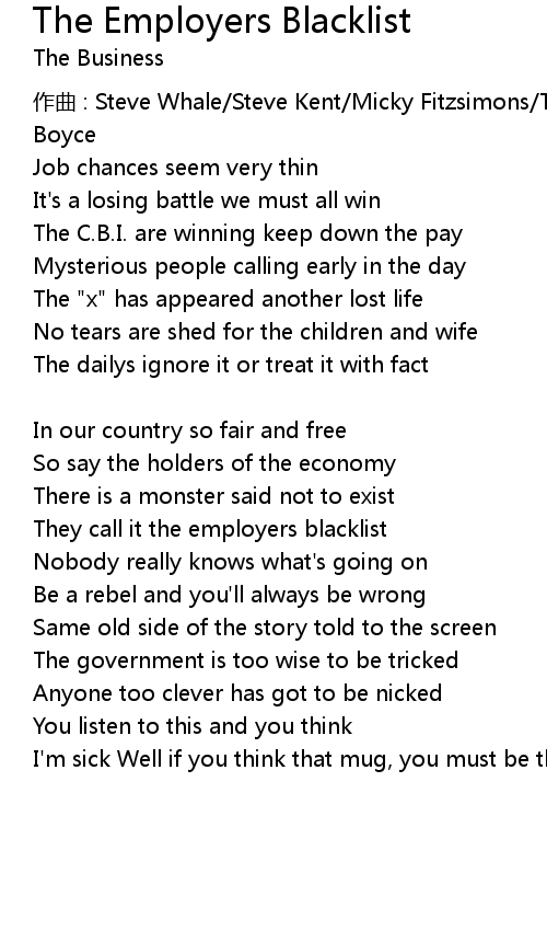 | Song | The Employers Blacklist |