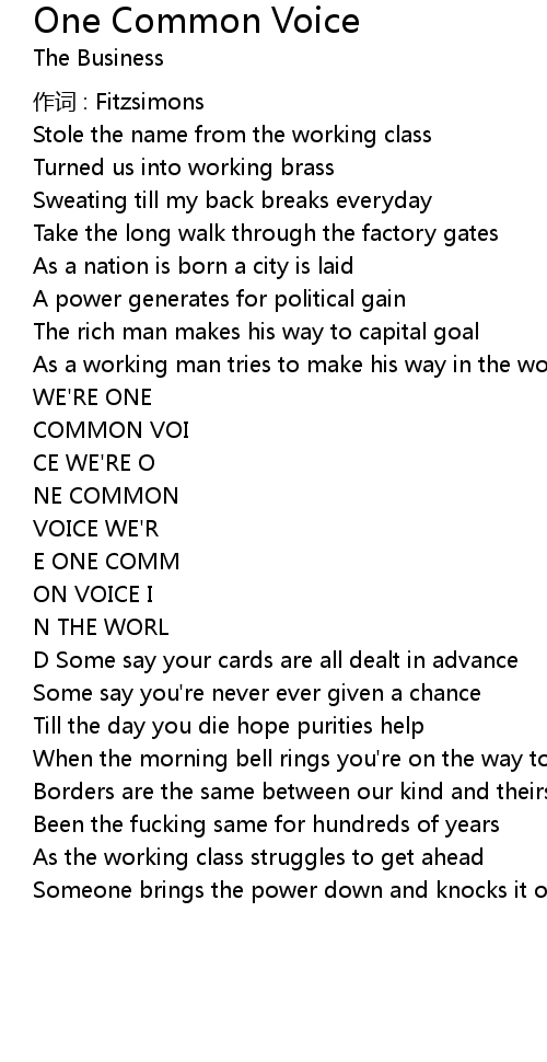 | Song | One Common Voice |