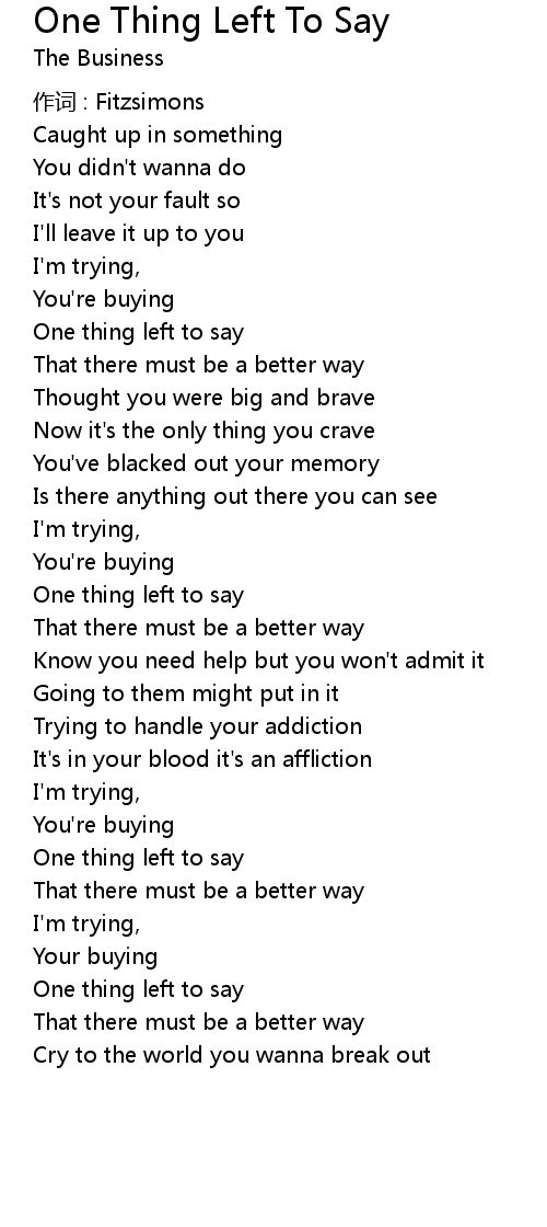 | One thing left to say | |