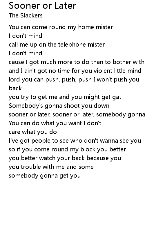 sooner or later, sooner or later, somebody gonna get you |