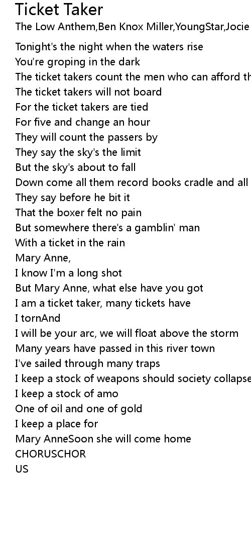 For the ticket takers are tied |