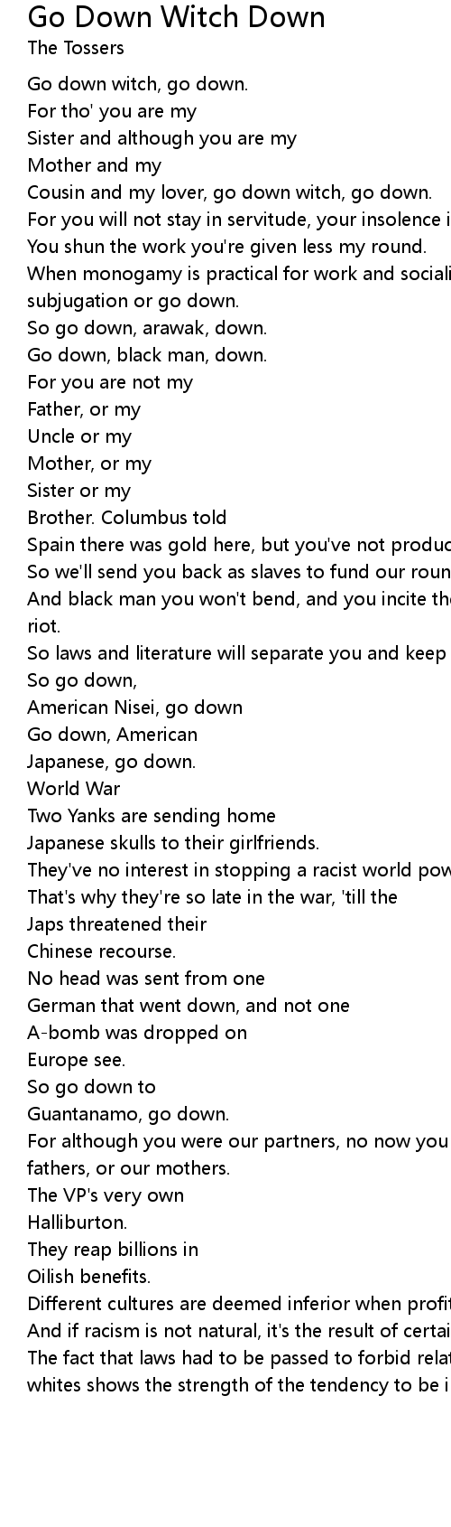 And black man you won't bend, and you incite the white servants and slaves to riot. |