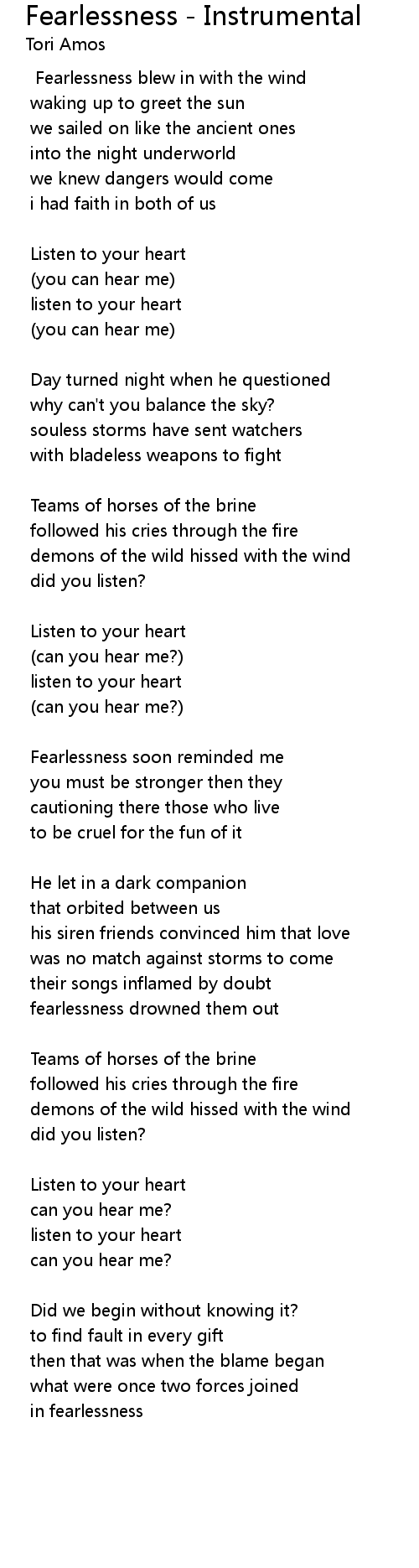Fearlessness - Instrumental Lyrics