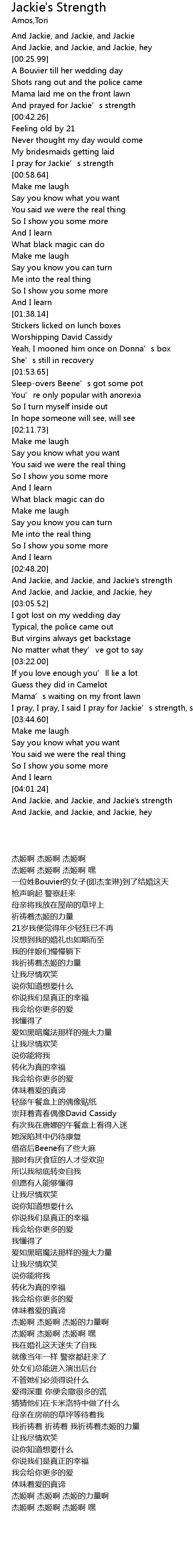 | [04:02.72] | And Jackie, and Jackie, and Jackie's strength |