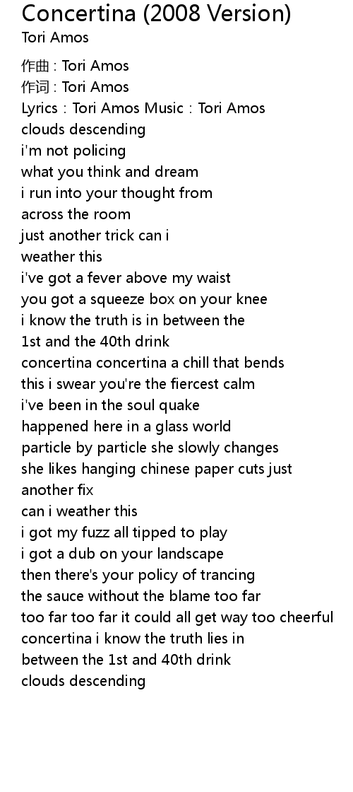 | Lyrics:Tori Amos Music:Tori Amos | |