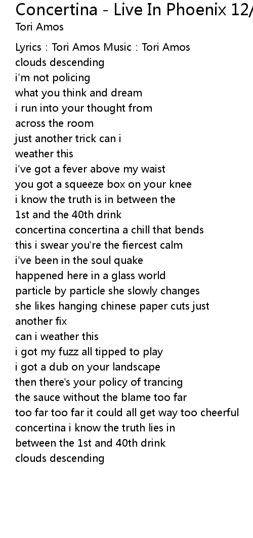 | Lyrics:Tori Amos Music:Tori Amos | |