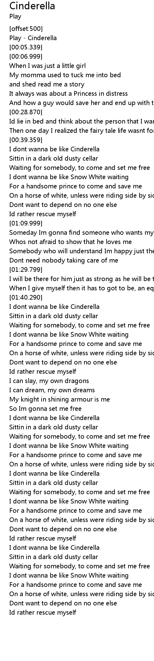 I dont wanna be like Cinderella |