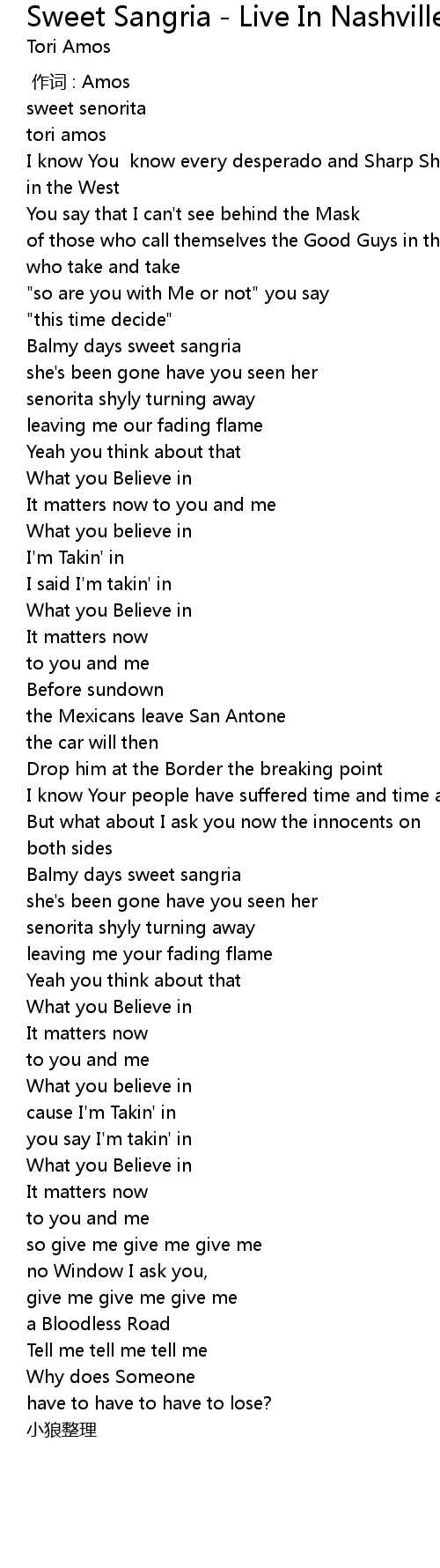 | Song | Sweet Sangria - Live In Nashville 11/12/07 |