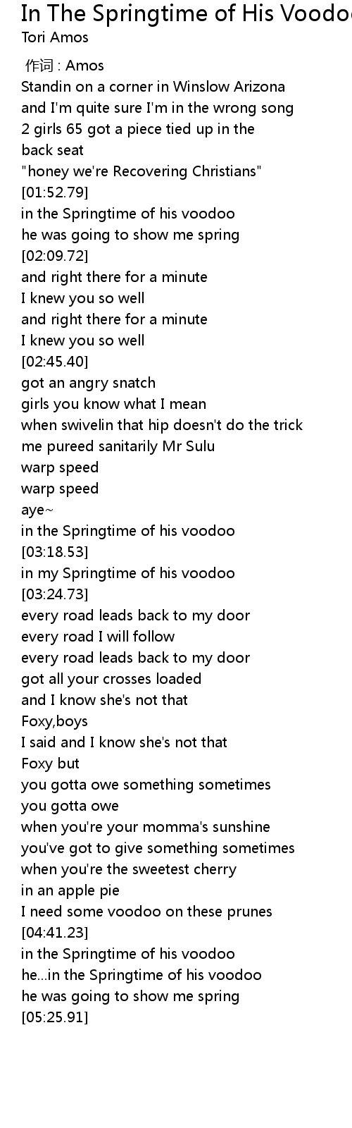 | [05:09.49] | he... in the Springtime of his voodoo |
