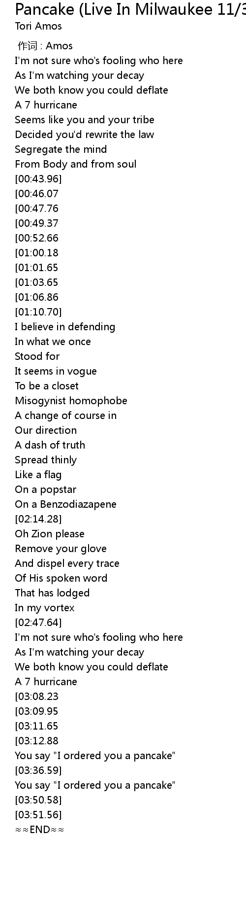 | Song | Pancake (Live In Milwaukee 11/3/07) |