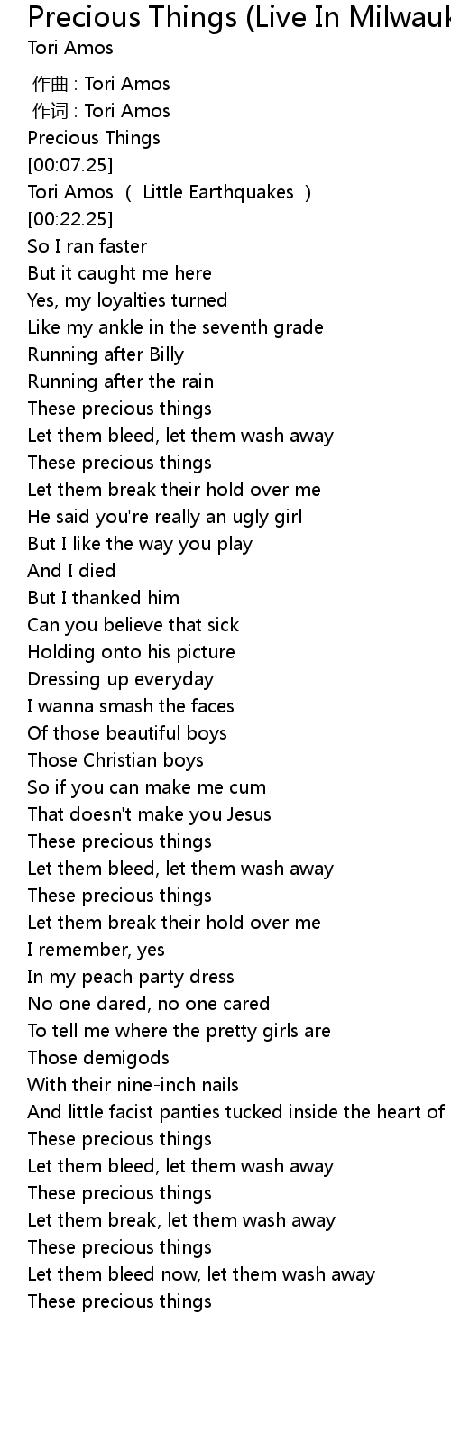 | [00:15.00] | Tori Amos ( Little Earthquakes ) |