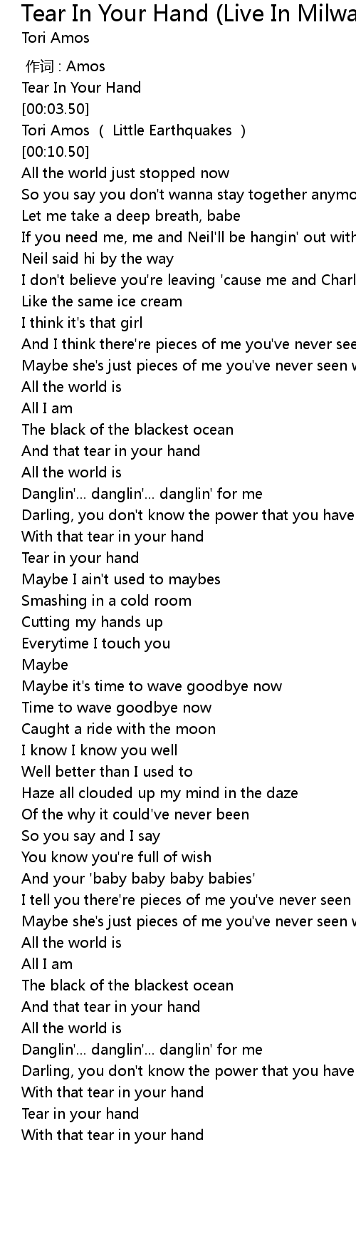 | [00:07.00] | Tori Amos ( Little Earthquakes ) |