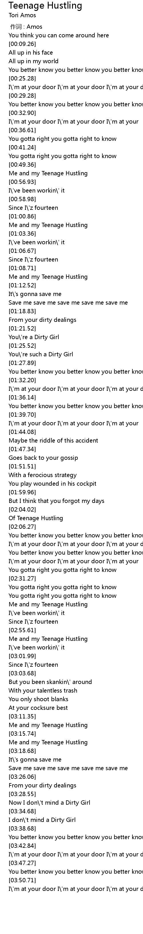 | [03:32.74] | Now I don' t mind a Dirty Girl |