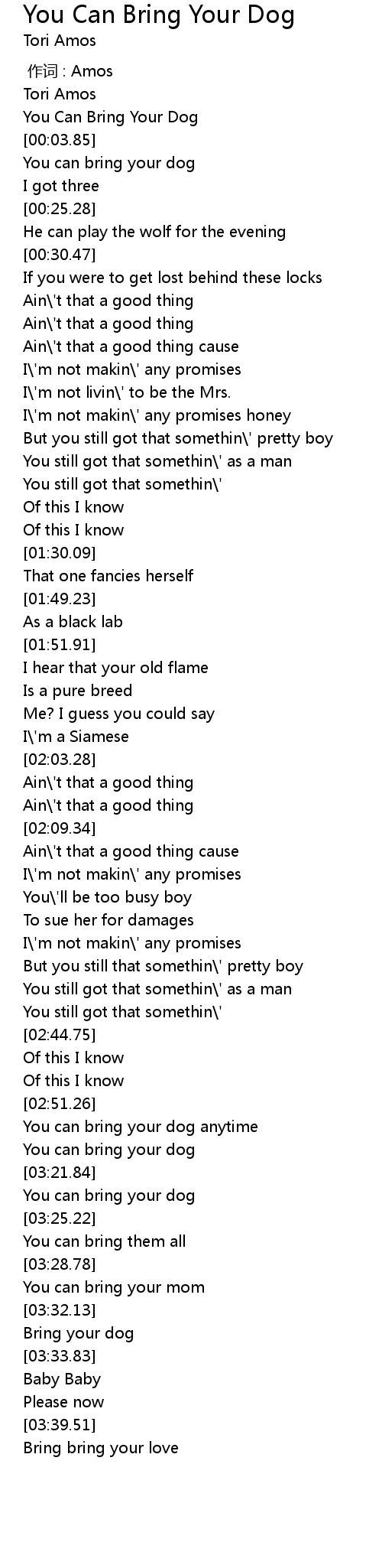 | [03:32.95] | Bring your dog |