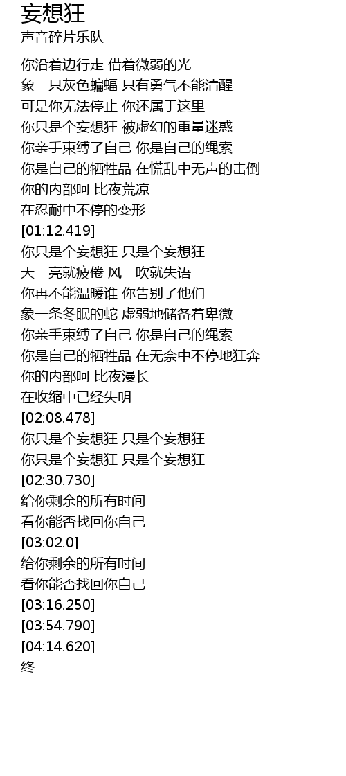 | [02:23.0] | 你只是个妄想狂 只是个妄想狂 |