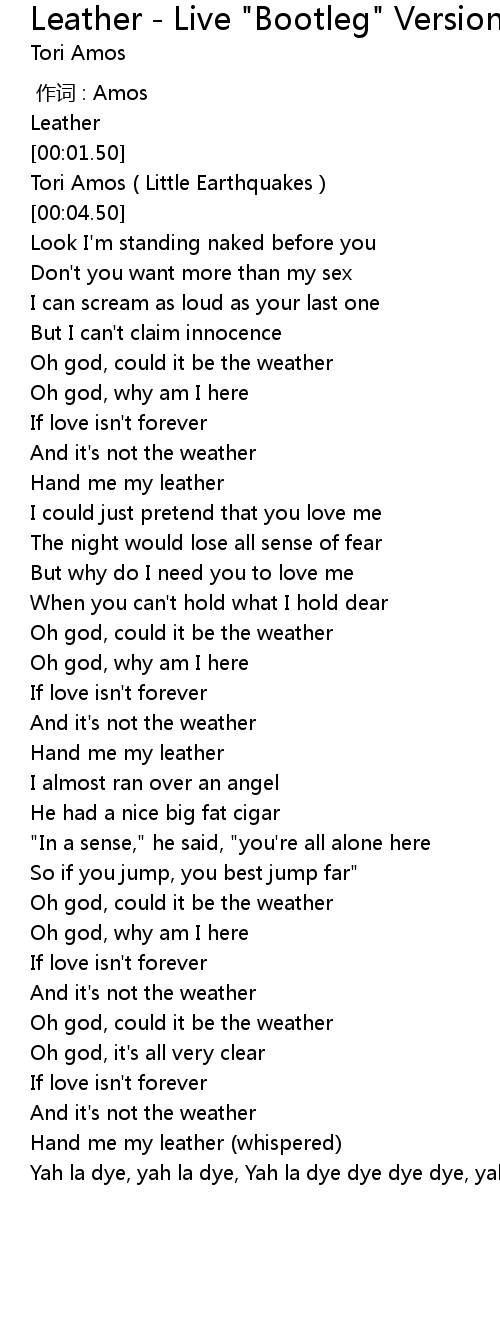 | [00:03.00] | Tori Amos ( Little Earthquakes ) |
