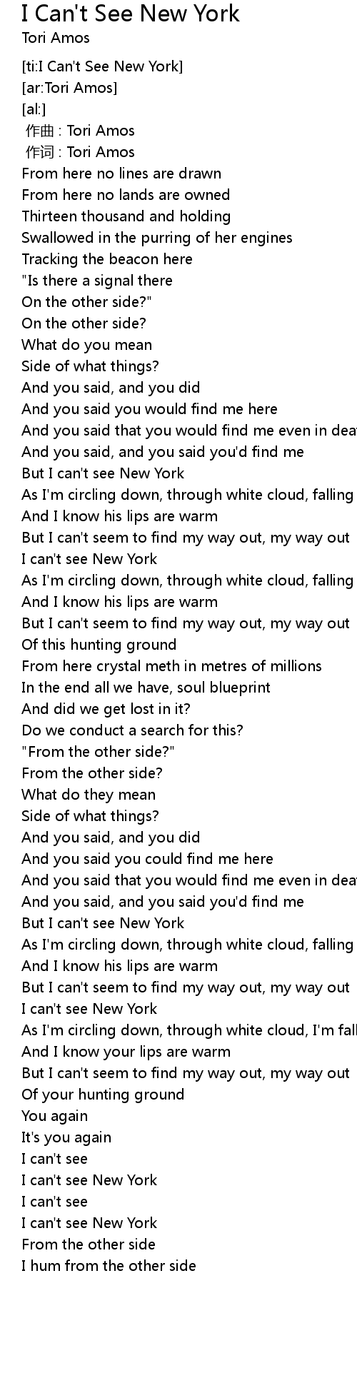 | [02:46.41] | But I can't see New York |