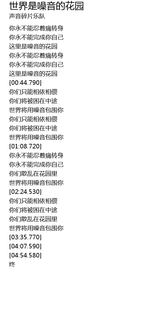 | [00:40.720] | 这里是噪音的花园 |