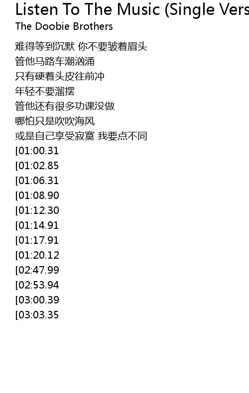 | [03:42.40][02:53.94][01:35.65] | wo..Listen To The Music |