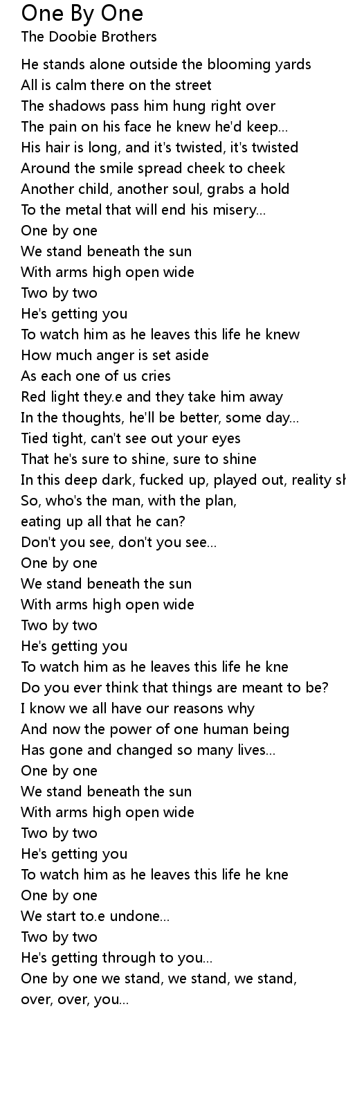 One by one we stand, we stand, we stand, |