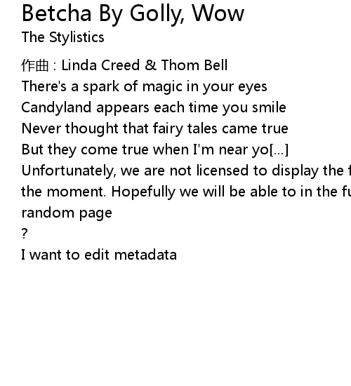 | Unfortunately, we are not licensed to display the full lyrics for this song at the moment. Hopefully we will be able to in the future. Until then, how about a | |