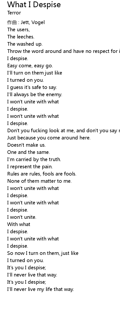 | Don' t you fucking look at me, and don' t you say my name. | |
