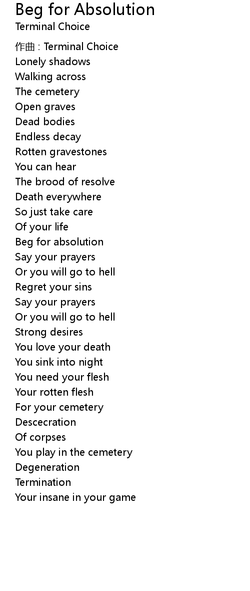Beg for Absolution Lyrics