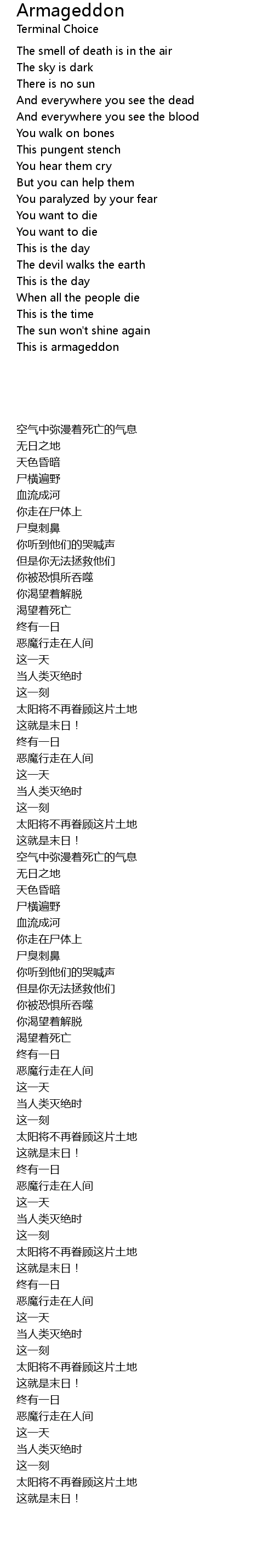 | Song | Armageddon |