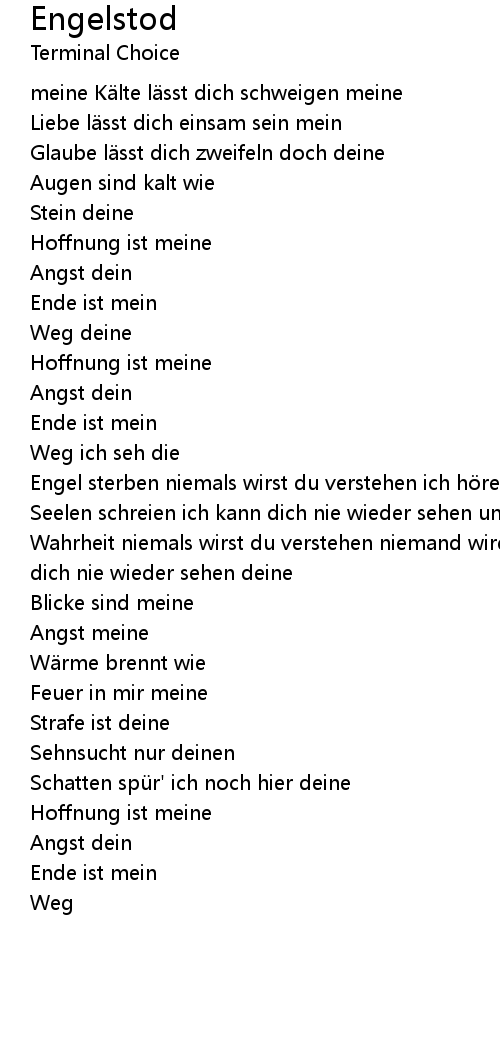 | Engel sterben niemals wirst du verstehen ich h re die | |