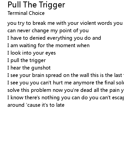 I see you you can't hurt me anymore the final solution to find my freedom to solve this problem now you're dead all the pain you're sowing comes back to you |