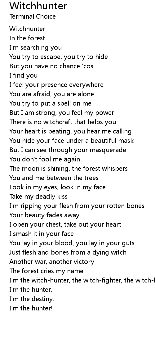 I'm the witch-hunter, the witch-fighter, the witch-killer! |