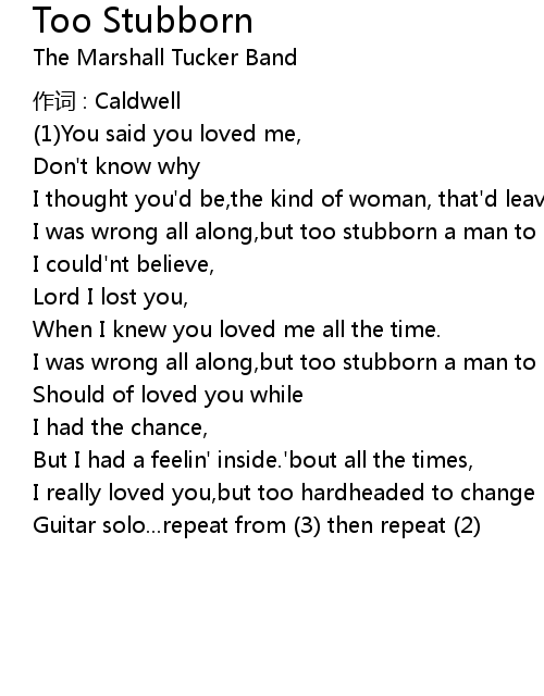 | Song | Too Stubborn |