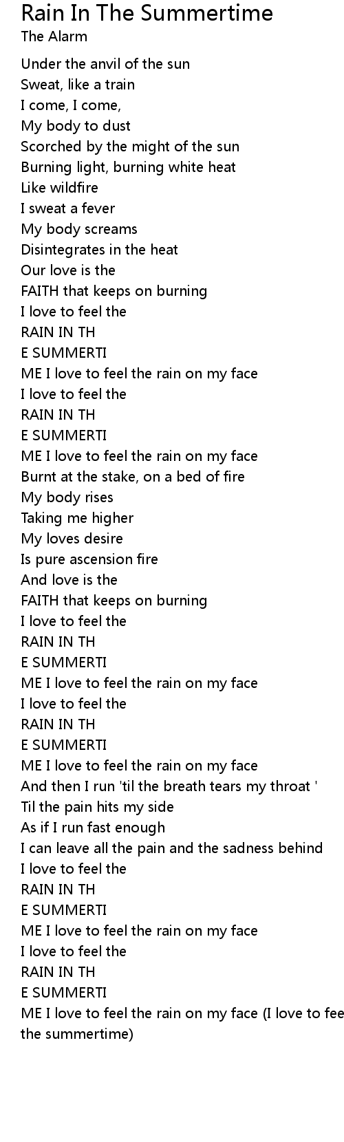 | ME I love to feel the rain on my face (I love to feel the rain on my face) (In the summertime) |