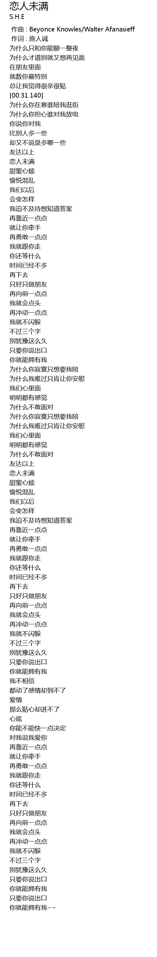 | [00:00.00] | 作曲 : Beyonce Knowles/Walter Afanasieff |