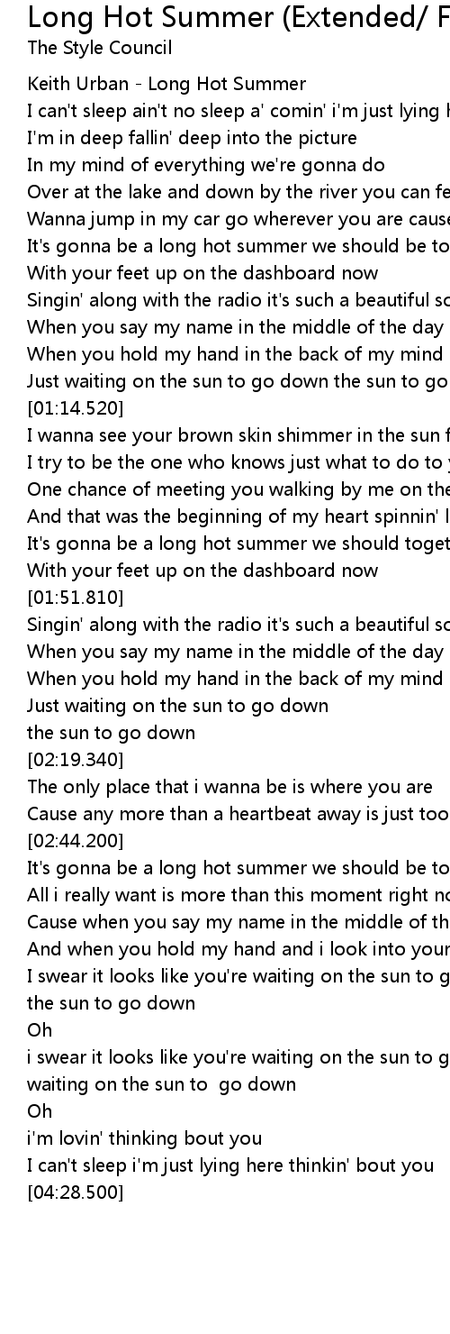 | [00:00.500] | Keith Urban Long Hot Summer |