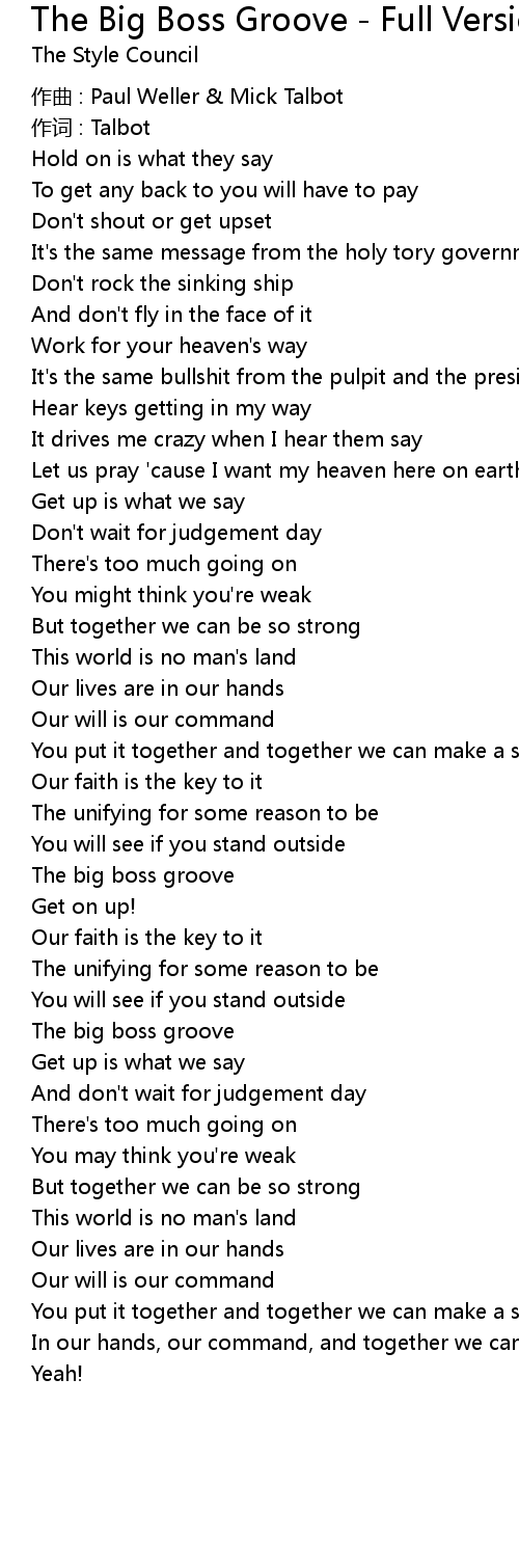 | zuò qǔ : Paul Weller Mick Talbot | |