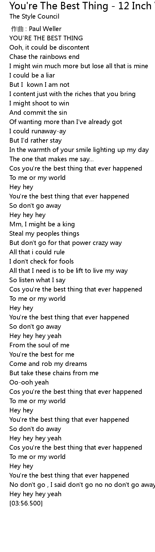 | [03:23.500] | Cos you're the best thing that ever happened |