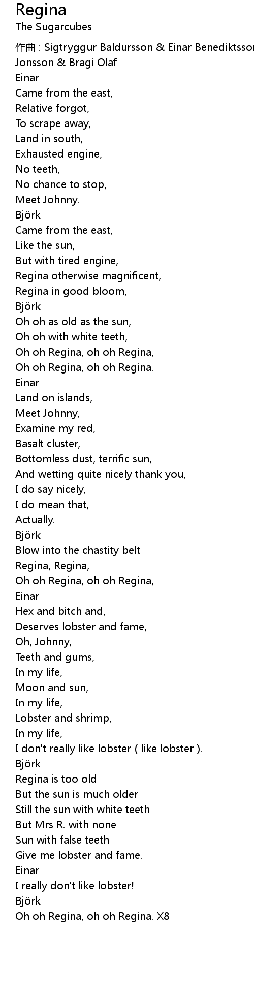 | Oh oh Regina, oh oh Regina. X8 |