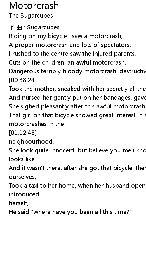 | [00:27.55] | Dangerous terribly bloody motorcrash, destructive motorcrash. |