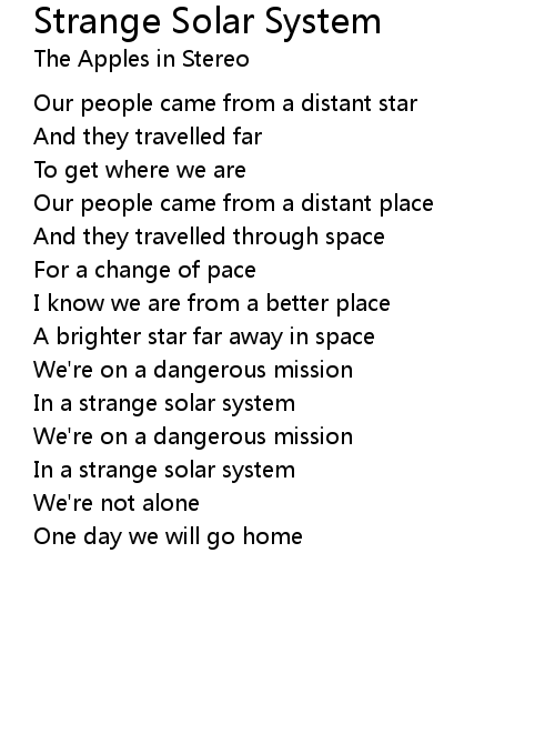 | Song | Strange Solar System |