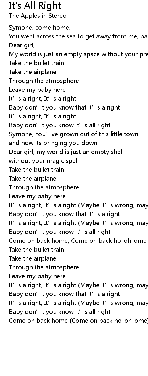 | It' s alright, It' s alright Maybe it' s wrong, maybe its right | |