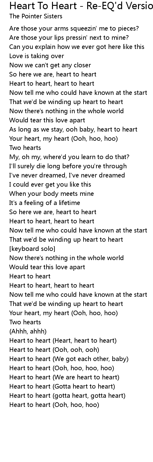 Heart to heart (Ooh, hoo, hoo, hoo)