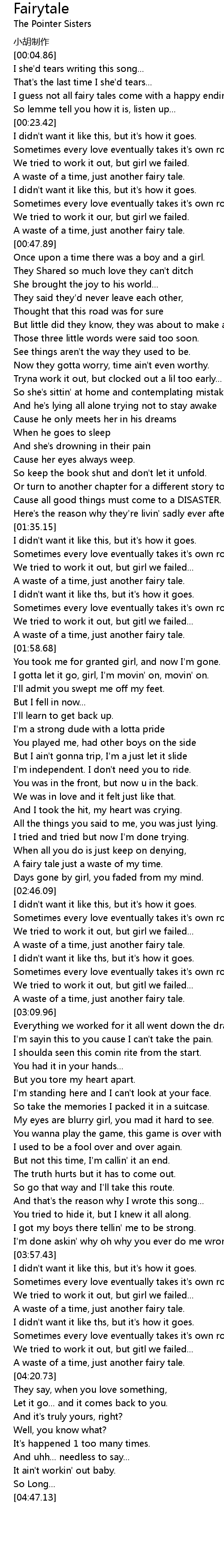 | [00:16.52] | I guess not all fairy tales come with a happy ending. |