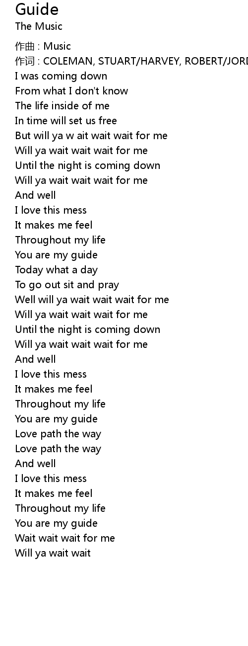 | 作词 : COLEMAN, STUART/HARVEY, ROBERT/JORDAN, PHILIP/NUTTER, ADAM | |