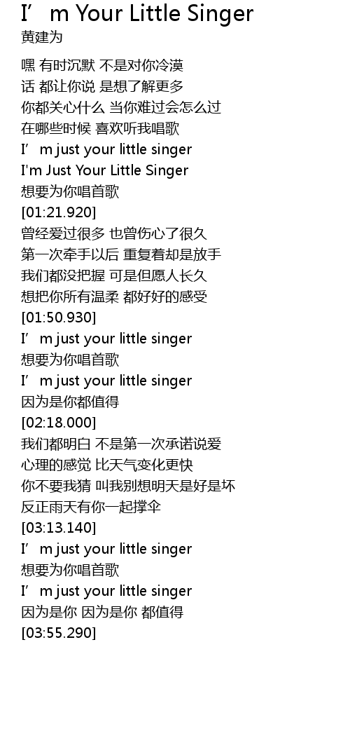 | [02:05.500] | I' m just your little singer |